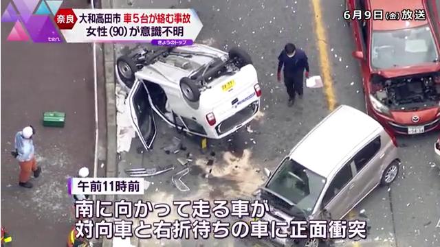 【奈良県大和高田】車5台絡む事故!90歳女性が死亡